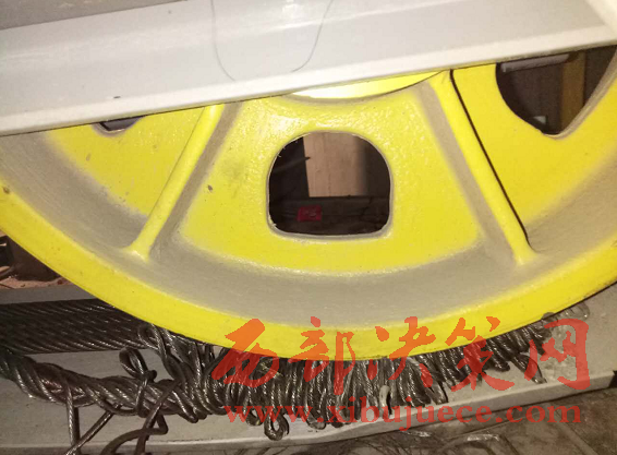 4月14日,西部大開發(fā)工作人員來到凱躍歐洲城,見到凱躍物業(yè)的尹經(jīng)理,說明來意后,尹經(jīng)理說,6號(hào)樓確實(shí)有五部電梯,其中有三部電梯在每月的電梯安檢時(shí)發(fā)現(xiàn)鋼絲繩有安全隱患,其中一部電梯鋼絲部分開叉,已經(jīng)絞到滑輪下面,如果繼續(xù)使用,會(huì)有安全問題。所以物業(yè)公司3月份就找到寶雞市特種設(shè)備檢驗(yàn)所(以下簡(jiǎn)稱特檢所),要求現(xiàn)場(chǎng)檢查電梯到底是否能安全,能否繼續(xù)使用。