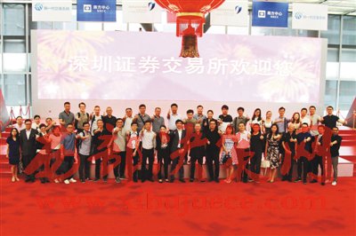 2016年5月9日,深交所在深圳召開阿里巴巴平臺商家上市座談會,近50位天貓擬上市商家代表出席。圖為部分商家在深交所上市大廳合影。
