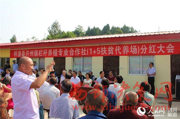 “賈婆婆,你還是數(shù)一下,看得不得少兩張喲!”5月19日,在綿陽市梓潼縣許州鎮(zhèn)欄桿養(yǎng)殖扶貧專業(yè)合作社(以下稱“欄桿合作社”)第一次分紅大會現(xiàn)場,73歲的賈國芳老人剛剛領(lǐng)到分紅金,一旁的村民向她開起了玩笑。賈國芳認(rèn)真數(shù)著手中的現(xiàn)金,數(shù)完后,她聲音有些顫抖的說:“21張,2100元,不會少,感謝黨和政府為我們貧困家庭著想!”她的話音剛落,雷鳴般的掌聲在現(xiàn)場響起。
