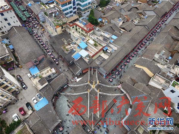這是5月30日在會(huì)理古城航拍的“萬(wàn)人藥根宴”。