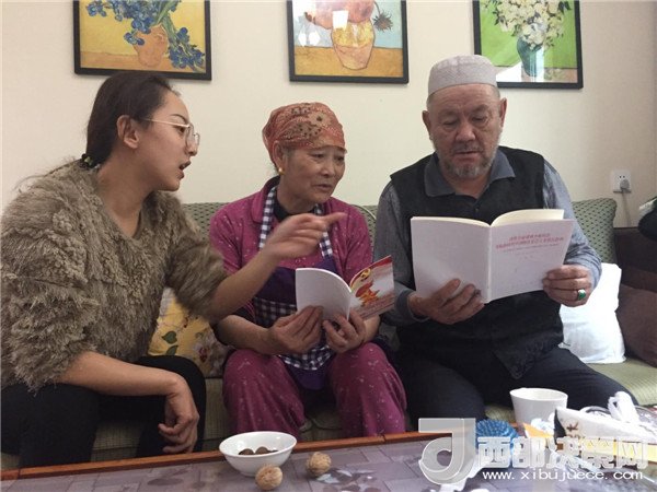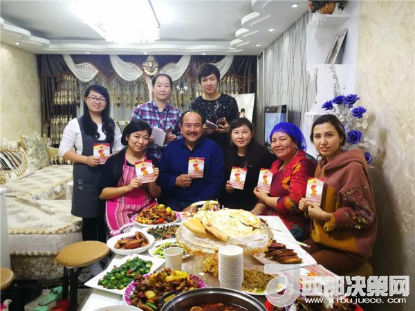 傍晚,一大群來自不同民族,不同單位的新疆兒女聚在了一起,紛紛加入到這個民族團(tuán)結(jié)的大聚會里,彈一首歡快悅耳的冬不拉,舞一曲深情優(yōu)美的賽乃姆,唱一首民族團(tuán)結(jié)的贊歌,將整個聚會推向高潮。賽買提·阿合買提高興地說:“我今天太開心了!這個結(jié)婚紀(jì)念日太有意義了,你的親戚,我的親戚,變成了我們的親戚,以后這就是你們的家,你們要經(jīng)常來啊!” 趁著大家都在興頭上,韓莉書記又拿出學(xué)校專門印制的《不忘初心 牢記使命-黨的十九大精神進(jìn)校園讀本》,熱情地為親戚們宣傳起十九大精神,給大家講起黨的好政策來。在得知艾來提·賽買提目前還沒有找到合適的工作,沒有穩(wěn)定收入的情況后,大家立刻表示愿意幫助他早日找到合適的工作,幫助他們解決最實(shí)際的困難,把溫暖送到他們的心坎中。大家唱唱跳跳,說說笑笑,其樂融融,在互幫互助中讓民族團(tuán)結(jié)之花越開越艷。