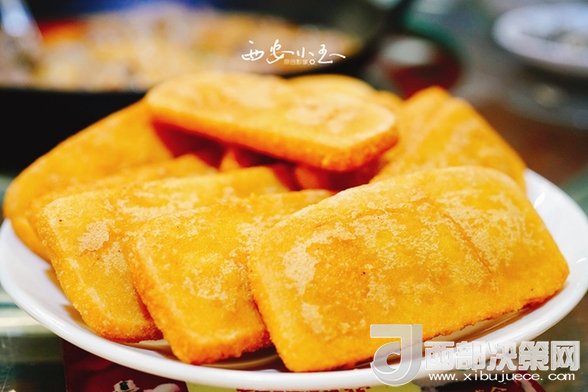 再來一份糜子糕,告訴成都的小伙伴,《舌尖上的中國》里介紹過的黃饃饃,跟這個一樣,都是用糜子做的。外焦里糯,香甜美味。