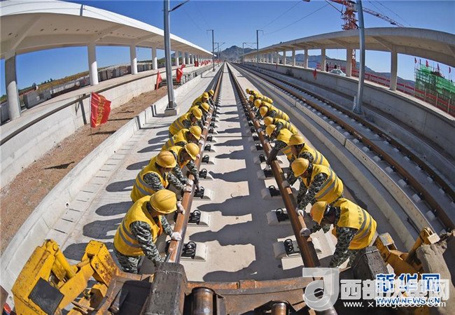 中鐵十九局工程人員在京沈高鐵凌源南站進(jìn)行鋪軌作業(yè)(9月28日攝)。京沈高鐵起自北京星火站,經(jīng)河北省承德市、遼寧省朝陽市、阜新市接入沈陽站,線路全長(zhǎng)698公里,設(shè)計(jì)時(shí)速350公里。