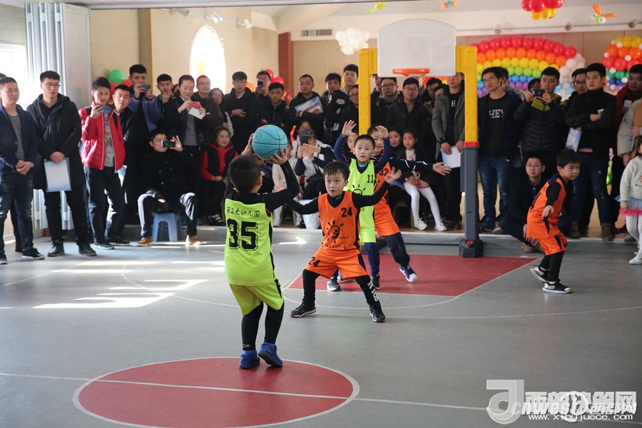 西北工業(yè)大學(xué)幼兒園教師董樂帶領(lǐng)小朋友展示籃球教學(xué)活動。