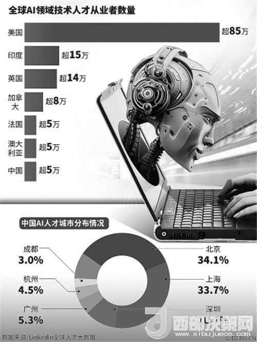據(jù)《人民日?qǐng)?bào)海外版》報(bào)道,工信部教育考試中心副主任周明向媒體透露,中國(guó)人工智能人才缺口超過(guò)500萬(wàn)人。
