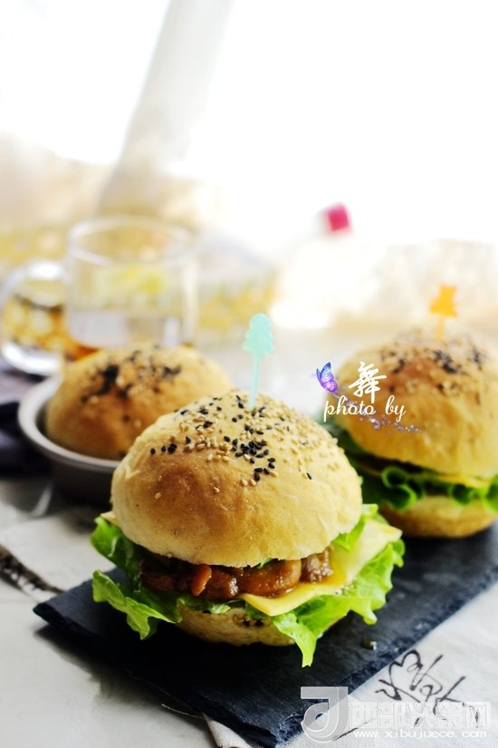 2、漢堡表面我只是刷清水,如果你喜歡上色好看的話可以用蛋液哈。