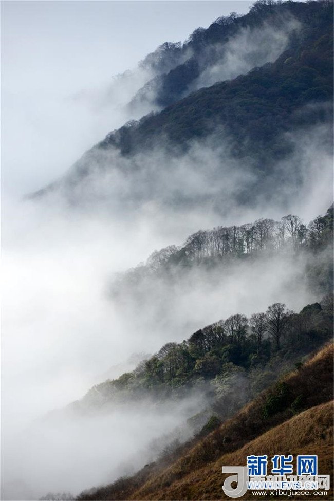 這是1月7日在貴州省黔東南苗嶺國家地質(zhì)公園拍攝的云海景觀。寒冬時(shí)節(jié),位于貴州省黔東南州的苗嶺國家地質(zhì)公園出現(xiàn)云海霧凇景觀,原始森林和草場在云海中若隱若現(xiàn),美若畫卷。(楊文斌攝)