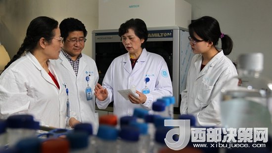 李蘭娟院士與項(xiàng)目組成員在討論。圖中左三為李蘭娟院士-盧紹慶攝