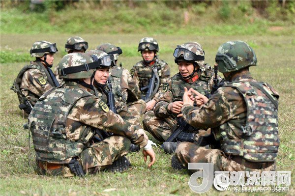 指揮員和隊(duì)員正在探討射擊要領(lǐng)