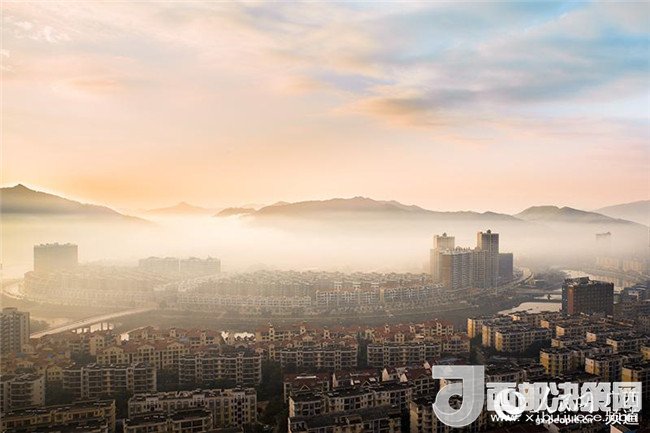 1月18日電1月18日,廣西上思縣城出現(xiàn)了平流霧奇觀,在朝陽(yáng)渲染下的金黃色霧氣在低空緩緩地流動(dòng),樓房在霧氣中若隱若現(xiàn),宛若仙境。