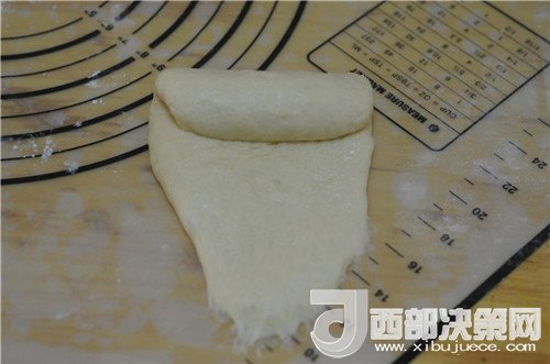 7.取一個小劑子,搟成牛舌狀后,卷起來