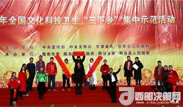 西部決策網(wǎng)-西部大開發(fā)訊(帥華鋒 通訊員 馬存福 漆曉明) 1月19日,2018年全國(guó)文化科技衛(wèi)生“三下鄉(xiāng)”集中示范活動(dòng)在兩當(dāng)縣日月廣場(chǎng)舉行。中央文明辦專職副主任夏偉東,副省長(zhǎng)李斌,中宣部宣教局局長(zhǎng)常勃,中央文明辦一局局長(zhǎng)張志勇,省委宣傳部副部長(zhǎng)李均,市委書記孫雪濤,市委副書記、市長(zhǎng)崔景瑜,省文明辦主任羅鳳存,市委常委、宣傳部長(zhǎng)李興華等出席活動(dòng)。