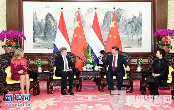 習近平說,威廉——亞歷山大國王和王后在中國傳統(tǒng)新春佳節(jié)到來之際訪華,我們感到格外高興。2014年我對荷蘭進行國事訪問,同你共同確定了中荷開放務實的全面合作伙伴關系新定位,為兩國合作制定了發(fā)展目標和規(guī)劃。在雙方共同努力下,我們達成的共識和互訪成果得到落實,兩國關系進入了歷史最好時期,雙方相互尊重彼此核心利益和重大關切,政治互信不斷深化,貿(mào)易、投資、創(chuàng)新、人文等各領域交往合作成果豐碩。中荷關系正站在新起點上,面臨新的發(fā)展機遇,相信在新的一年里,兩國將通過共建“一帶一路”開展更多的互利合作。