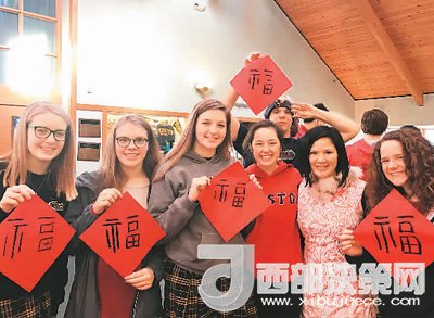 美國韋伯斯特孔子學院學員在展示“福”字。