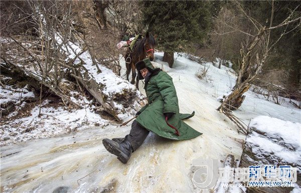 巡診隊(duì)醫(yī)生葉力夏提縱馬翻越喬拉克達(dá)坂(2017年12月15日攝)。