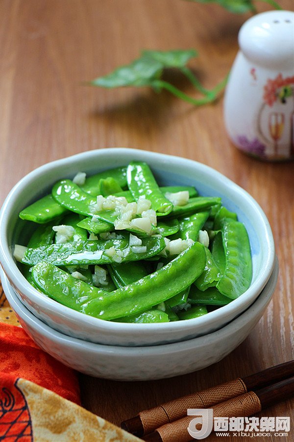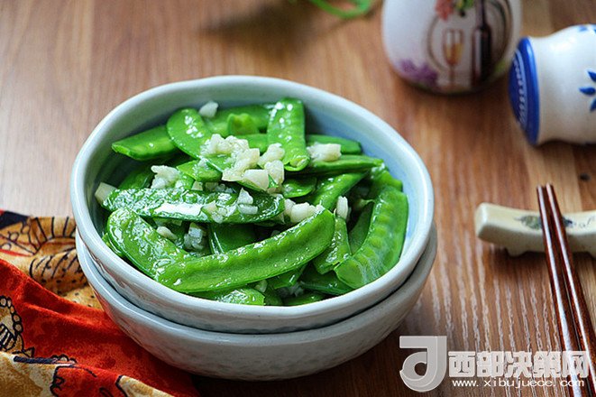 “蒜蓉荷蘭豆,一道百吃不厭的菜,不僅簡單易做,而且口味清爽,還具有極高的食療價值,對增強人體新陳代謝功能有十分重要的作用。