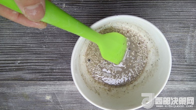 9.表層刷少許水撒上芝麻用手心壓實(shí)
