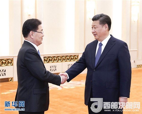 國(guó)家主席習(xí)近平12日在人民大會(huì)堂會(huì)見(jiàn)韓國(guó)總統(tǒng)特使、國(guó)家安保室長(zhǎng)鄭義溶。