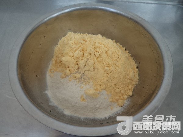 2.玉米面加小麥粉,再加少許酵母粉加水和成面團(tuán)醒發(fā)。半發(fā)即可