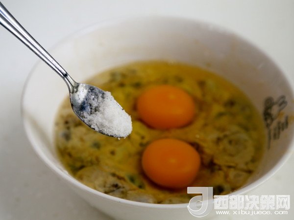3.打兩個(gè)雞蛋在“2”中,并加鹽調(diào)味。