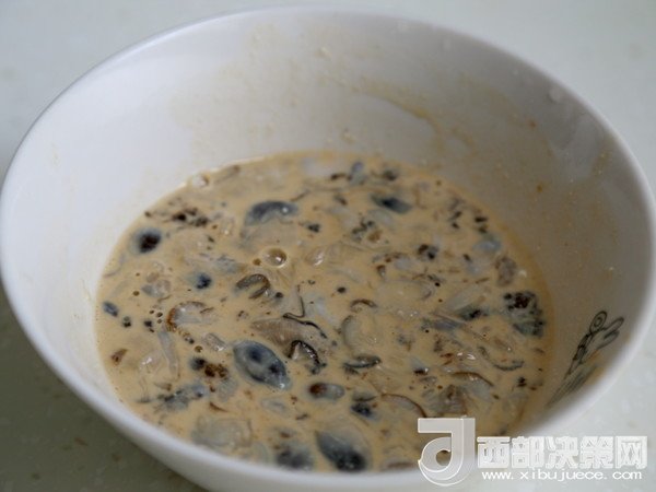 2.取一大碗將海蠣與50克紅薯粉和50克清水拌均。