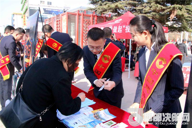 西部決策網(wǎng)——西部大開發(fā)訊(劉恒 齊彩云 通訊員 李海瑞 嵇祥)為進(jìn)一步提高金融消費(fèi)者的權(quán)責(zé)意識(shí)和風(fēng)險(xiǎn)意識(shí),幫助其自覺遠(yuǎn)離和抵制非法金融活動(dòng),引導(dǎo)金融消費(fèi)者理性維權(quán),構(gòu)建和諧、綠色的金融消費(fèi)環(huán)境,甘肅建行慶陽分行積極響應(yīng)人行號(hào)召,于3月15日在東湖公園及各營業(yè)網(wǎng)點(diǎn)開展了,以“權(quán)利·責(zé)任·風(fēng)險(xiǎn)”為主題的消費(fèi)者權(quán)益保護(hù)宣傳活動(dòng)。