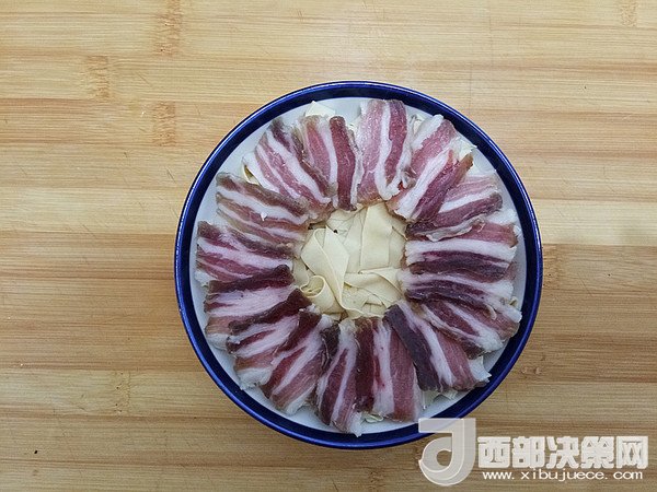 2、蒸制的時(shí)候,千張咸肉中可以加入少許水,我沒有加水,蒸出來稍稍有些干。