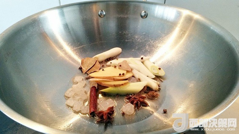 2.準(zhǔn)備:香料,大蔥,生姜冰糖,八角,草果,花椒粒。