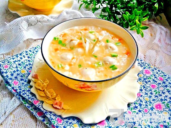 做給寶寶吃的蔬菜粥,寶寶不愛吃蔬菜,這不像方法做給他吃,胡蘿卜切丁,加入肉丸熬煮鮮美又營養(yǎng)