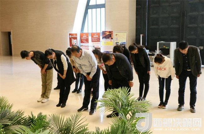 活動(dòng)中,館長(zhǎng)聶明靜、副館長(zhǎng)王雅麗以身作則,率先垂范,首先帶領(lǐng)廣大干部職工積極行動(dòng),擦拭墓碑,修整松林,清除雜草,規(guī)整垃圾,用這種簡(jiǎn)單而樸實(shí)的行動(dòng)來(lái)緬懷祭奠革命英魂。接著在王雅麗的主持下,由聶明靜帶頭紛紛向?yàn)楹葱l(wèi)陜甘邊革命勝利果實(shí)而英勇獻(xiàn)身的南梁閆洼子四十二烈士敬獻(xiàn)鮮花、鞠躬默哀、聽(tīng)述先輩事跡,并赴新館序廳向?yàn)榻⑿轮袊?guó)而鞠躬盡瘁矢志一生的“五大書記”(毛澤東、周恩來(lái)、朱德、劉少奇、任弼時(shí))銅像雕塑祭花默哀、撣拭塵灰,真切地表達(dá)了每一位紀(jì)念館人對(duì)無(wú)數(shù)英烈先賢革命壯舉的深切緬懷和偉大革命領(lǐng)袖的哀思敬慕之情。