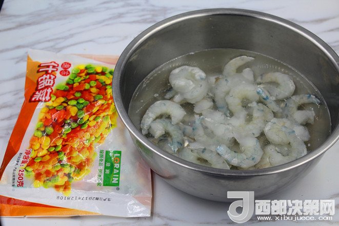 2.蝦仁處理干凈后,加適量料酒,鹽,蔥姜腌制10分鐘