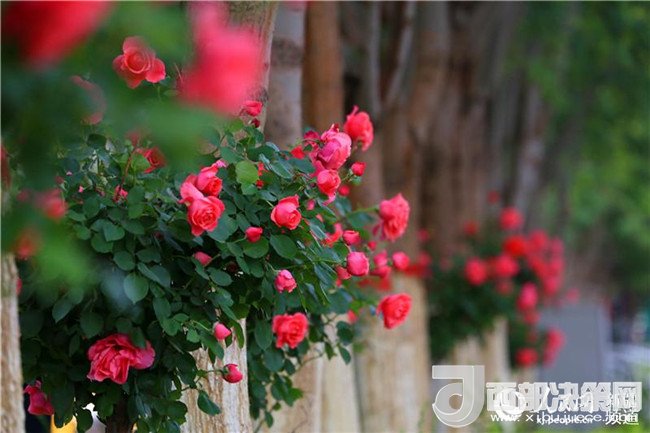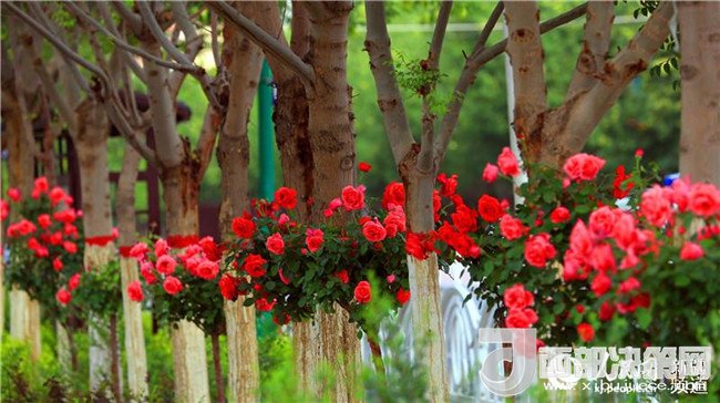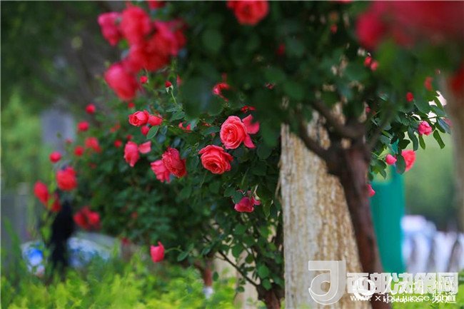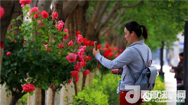 漫步在友好路兩側(cè)的人行道上,青青垂柳遮住了太陽的熾熱,垂柳上的許愿帶隨風(fēng)飄蕩,五顏六色的玫瑰花光彩奪目,空氣中都是夏天的味道。這里的人們都已經(jīng)換上的夏天的衣服,小孩子在老人和父母的陪伴下在這里納涼賞花,過往的路人時不時拿出手機(jī)和玫瑰花拍照留影。(李靖海、吳雙、胡國凱)