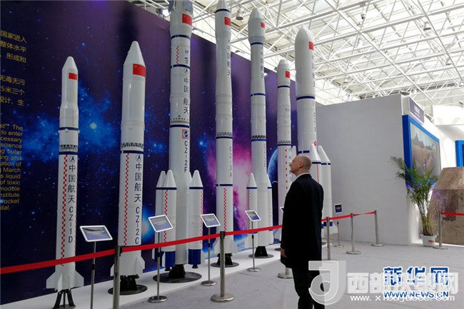 一位外國(guó)航天愛(ài)好者在參觀航天展。新華網(wǎng)才萌攝