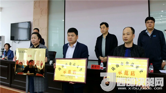 會(huì)上,席寧一宣讀了《隴南市食藥監(jiān)局關(guān)于命名2017年市級(jí)食品安全示范街示范店和示范學(xué)校食堂的通知》;李寶成宣讀了《隴南市食藥監(jiān)局關(guān)于命名2017年市級(jí)放心肉菜示范超市的通知》;為獲得全市2017年度食品安全示范店、農(nóng)產(chǎn)品示范超市的兩當(dāng)縣開元超市(農(nóng)貿(mào)市場店)、兩當(dāng)縣秦南農(nóng)產(chǎn)品電商體驗(yàn)中心、兩當(dāng)縣川渝九品火鍋店頒發(fā)了獎(jiǎng)牌;城關(guān)鎮(zhèn)、金洞鄉(xiāng)、農(nóng)牧局、教育局分別作了交流發(fā)言;縣食安辦主任、食藥局長彭小蘭作了工作報(bào)告;與各鄉(xiāng)鎮(zhèn)、工作站、食安委各成員單位簽訂了《2018年兩當(dāng)縣食品藥品安全目標(biāo)管理責(zé)任書》。