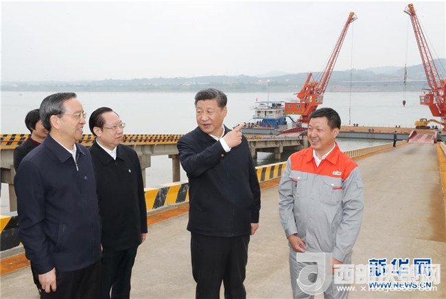 4月26日下午,中共中央總書記、國家主席、中央軍委主席習(xí)近平在武漢主持召開深入推動長江經(jīng)濟帶發(fā)展座談會并發(fā)表重要講話。這是座談會前,習(xí)近平于24日中午到興發(fā)集團宜昌新材料產(chǎn)業(yè)園,察看化工企業(yè)搬遷、改造以及碼頭復(fù)綠情況。新華社記者 鞠鵬 攝