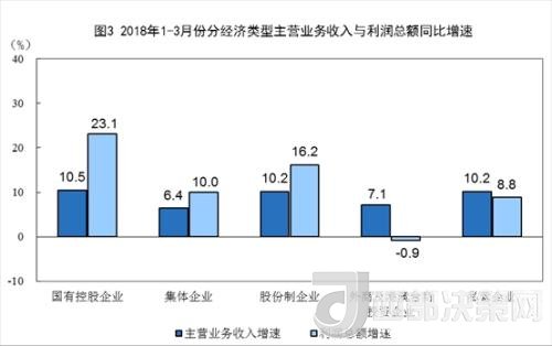 統(tǒng)計局?jǐn)?shù)據(jù)顯示,1-3月份,規(guī)模以上工業(yè)企業(yè)中,國有控股企業(yè)實現(xiàn)利潤總額4762.9億元,同比增長23.1%;集體企業(yè)實現(xiàn)利潤總額57.3億元,增長10%;股份制企業(yè)實現(xiàn)利潤總額10889.3億元,增長16.2%;外商及港澳臺商投資企業(yè)實現(xiàn)利潤總額3738億元,下降0.9%;私營企業(yè)實現(xiàn)利潤總額4316.8億元,增長8.8%。