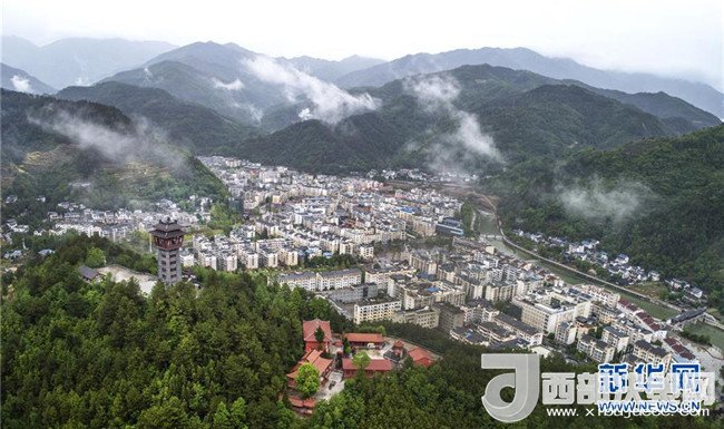 由浙江省寧波市援建的青川縣城東山小區(qū)(4月25日無人機拍攝)。汶川地震后的2009年12月,東山小區(qū)成為當地第一個建成的安置小區(qū),首批408戶災民搬進了新居。新華社記者陶明攝