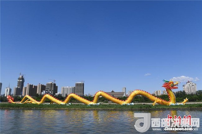 5月2日,山西太原汾河景區(qū)的中國(guó)巨龍裝飾一新。這條名為“中華第一巨龍”的景觀燈組長(zhǎng)126米,龍頭高16米,共計(jì)使用防雨綢布約3000平方米。中新社記者武俊杰攝