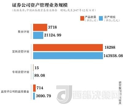 基金業(yè)協(xié)會數(shù)據(jù)顯示,截至2017年末,證券公司資產(chǎn)管理業(yè)務規(guī)模16.88萬億元,相比2017年一季度末18.77萬億元(最高值)減少1.89萬億元。其中定向資管計劃產(chǎn)品規(guī)模為14.39萬億元,相比2017年一季度末16.06萬億元下滑1.67萬億元。也就是說在券商資管規(guī)??s減的1.89萬億中,8成左右是通道業(yè)務。
