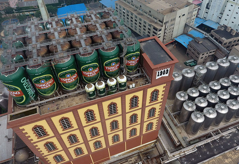 這是無人機(jī)拍攝的青島啤酒廠(2017年8月10日攝)。新華社記者 朱崢 攝