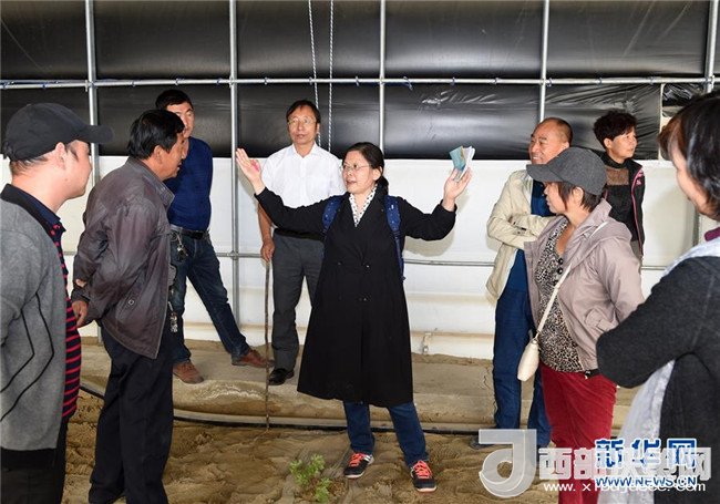 在新疆和田國家農(nóng)業(yè)科技園先導(dǎo)區(qū)葡萄示范種植大棚,從北京專程趕來的葡萄專家徐海英(中)為當(dāng)?shù)厝罕妭魇谄咸逊N植管理技術(shù)(4月19日攝)。