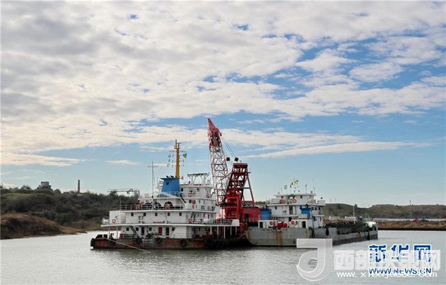 這是2017年10月12日,一組由駁船、運(yùn)泥船和抓斗式疏浚船組成的清淤單元在烏克蘭敖德薩州南方港施工。由中國港灣工程有限責(zé)任公司承攬,中國交建天津航道局有限公司承建的烏克蘭南方港糧食碼頭疏浚工程2018年1月30日舉行竣工簽字儀式。南方港疏浚項(xiàng)目解決了該港口被淤泥阻塞多年的困擾,對烏克蘭進(jìn)一步擴(kuò)大糧食出口具有戰(zhàn)略意義。新華社記者陳俊鋒 攝