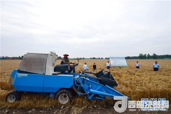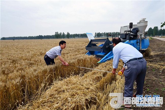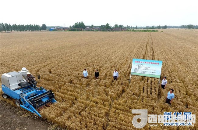 當(dāng)日,在河南省鄧州市腰店鎮(zhèn)國家雜交小麥項(xiàng)目制種基地,專家組對(duì)小麥進(jìn)行田間隨機(jī)多點(diǎn)取樣調(diào)查,收割機(jī)對(duì)小麥進(jìn)行實(shí)打?qū)嵤铡y(cè)產(chǎn)數(shù)據(jù)表明,雜交小麥種子生產(chǎn)在豐產(chǎn)性、抗逆性、抗病性、適應(yīng)性等方面表現(xiàn)優(yōu)異,標(biāo)志著我國雜交小麥研發(fā)進(jìn)入大田應(yīng)用和產(chǎn)業(yè)化階段。新華社記者 馮大鵬 攝