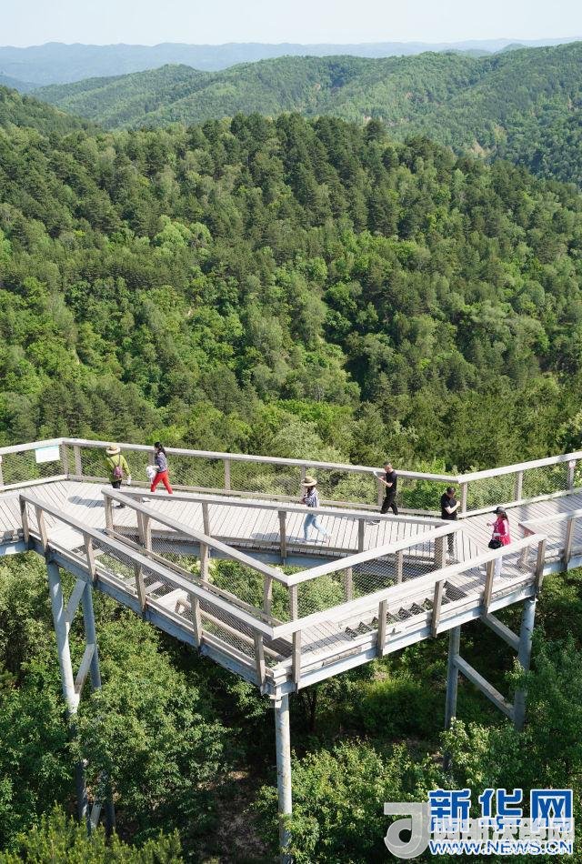 5月31日,游客在黃龍縣瓦子街鎮(zhèn)“樹(shù)頂漫步”景區(qū)內(nèi)游玩。新華社記者邵瑞攝