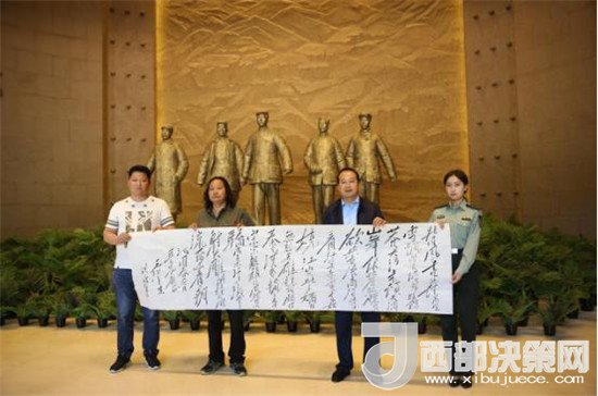 西部決策網(wǎng)—西部大開發(fā)訊(帥華鋒 通訊員 陳彥榮 齊彩云)在這綠意盎然、鳥語花香的美好時節(jié),“紅色南梁”迎來了中國“毛體”書法家協(xié)會會員、中國硬筆書法協(xié)會會員、中國書畫家協(xié)會會員、金陵書畫院理事、江西廬山毛主席書法研究院高級研究員、中國毛澤東詩詞研究會會員、韶山毛澤東書法藝術研究會會員王洪濤老師,他帶著對華池革命老區(qū)的深情厚誼和對劉志丹、謝子長、習仲勛等陜甘邊革命先輩舍生忘死、救民出水火的崇敬之意,長途跋涉一路輾轉(zhuǎn),向南梁革命紀念館捐贈毛主席詩詞書法作品。