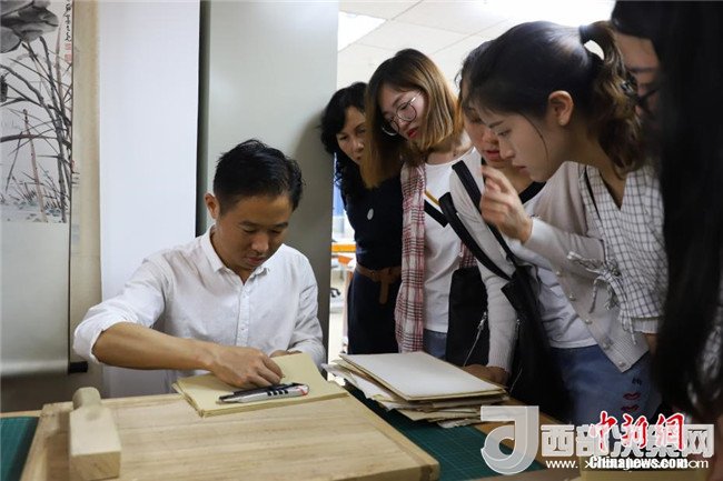 古籍修復(fù)技藝吸引民眾圍觀。中新社發(fā)瞿宏倫攝