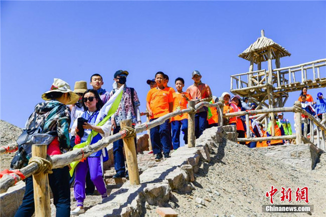 敦煌陽關景區(qū)新開辟的陽關棧道旅游項目,端午節(jié)期間吸引眾多游人體驗。王斌銀 攝
