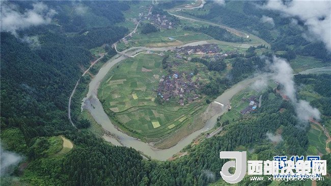 煙雨中的貴州省榕江縣寨蒿鎮(zhèn)三洲村風光(6月24日無人機拍攝)。