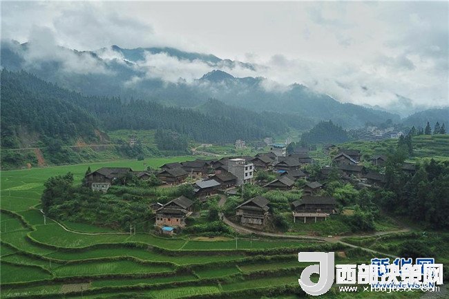 6月24日,貴州榕江縣的侗族村寨籠罩在煙雨之中,仿佛披上了一層輕紗霓裳,構(gòu)成了一幅幅秀美的山水畫卷。 新華社記者 歐東衢 攝