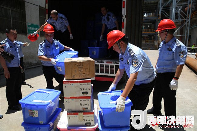 民警將要銷毀的毒品運下車。劉政寧 攝